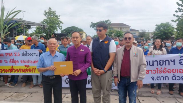 ตาก-นอภ.แม่สอด รับหนังสือร้องจากเกษตรกรผู้ปลูกอ้อย 3 อำเภอ ยื่นหนังสือขอรัฐบาลช่วยเงินค่าตัดอ้อย ตันละ 120 บาท จากอ้อยสดทั้งหมดกว่า 6 แสนตัน