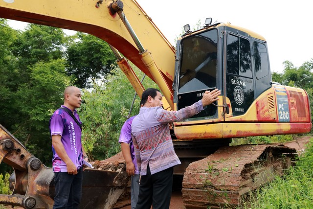 พิษณุโลก รองนายก อบจ.พิษณุโลก นำเจ้าหน้าที่พร้อมเครื่องจักรกลช่วยขุดลอกวัชพืชเปิดทางน้ำแก้ปัญหาน้ำท่วมขังนาข้าวของเกษตรกรในพื้นที่ ต.วังพิกุล อ.วังทอง