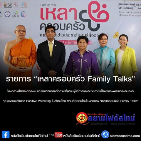 โครงการสื่อสารกิจกรรมและจัดเวทีกลางสื่อสารให้ความรู้แก่ภาคีเครือข่ายภายใต้โครงการพัฒนาครอบครัวคุณธรรมพลังบวก Positive Parenting ในสังคมไทย ผ่านสื่อออนไลน์ในรายการ “เหลาครอบครัว Family Talks”