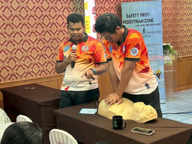 ภายในพิธีเปิด หัวหน้าสำนักงานฯ ได้กล่าวรายงานต่อประธานในพิธี พร้อมร่วมพบปะพูดคุยกับนักเรียนผู้เข้าร่วมกิจกรรม โดยเน้นย้ำถึงความสำคัญของการใช้รถใช้ถนนอย่างปลอดภัย การป้องกันอุบัติเหตุในชีวิตประจำวัน ตลอดจนแนวทางการเอาตัวรอดจากสถานการณ์ฉุกเฉินในโรงเรียน ซึ่งการอบรมในครั้งนี้ มุ่งหวังให้เยาวชนเป็น “ต้นแบบด้านความปลอดภัย” ที่สามารถนำความรู้ไปถ่ายทอดสู่เพื่อนร่วมโรงเรียนและชุมชน อันจะช่วยลดความเสี่ยงและสร้างสังคมที่ปลอดภัยมากยิ่งขึ้น