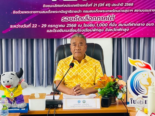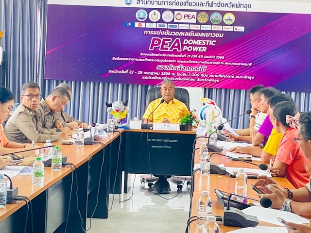 วันที่ 3 กรกฎาคม 2568 เวลา 13.00 น. ณ ห้องประชุมดอกพะยอม ชั้น 2 สำนักงานการท่องเที่ยวและกีฬาจังหวัดพัทลุง นายปรีชา นวลน้อย รองผู้ว่าราชการจังหวัดพัทลุง เป็นประธานการประชุม นายสุรัตน์ จรณโยธิน ท่องเที่ยวและกีฬาจังหวัดพัทลุง พร้อมคณะกรรมการและผู้เกี่ยวข้อง หารือการเตรียมความพร้อมจัดการแข่งขันวอลเลย์บอลเยาวชน PEA – DOMESTIC POWER ชิงชนะเลิศแห่งประเทศไทย ครั้งที่ 21 (ปีที่ 41) รอบคัดเลือกภาคใต้ ประจำปี 2568