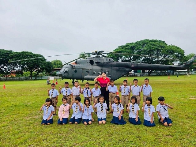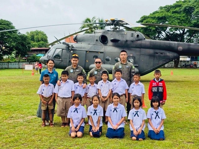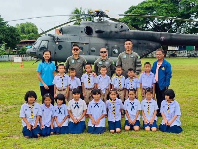 โดยทางผู้อำนวยการและครูได้จัดห้องประชุมรับรองนักบินทั้ง 4 คน จากกองพันบินที่ 41 กรมบิน ศูนย์การบินทหารบก จ.ลพบุรี โดยมีผู้เฒ่าผู้แก่ที่มาชมเฮลิคอปเตอร์ พร้อมนำฝ้ายมาผูกแขนเพื่อเป็นการเรียกขวัญให้นักบินทั้ง 4 คน ซึ่งคาดว่าน่าจะรอให้ฟ้าเปิดนักบินจึงจะนำเครื่องขึ้นบินเพื่อไปปฏิบัติภารกิจที่สำคัญต่อไป