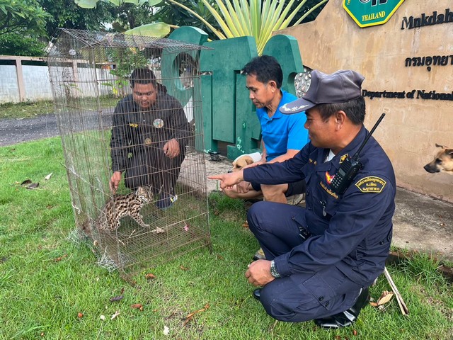 มุกดาหาร -แตกตื่น! คนงานวางบ่วงดักหนู แต่ได้เสือดาวกลางสวนริมโขง มุกดาหาร
