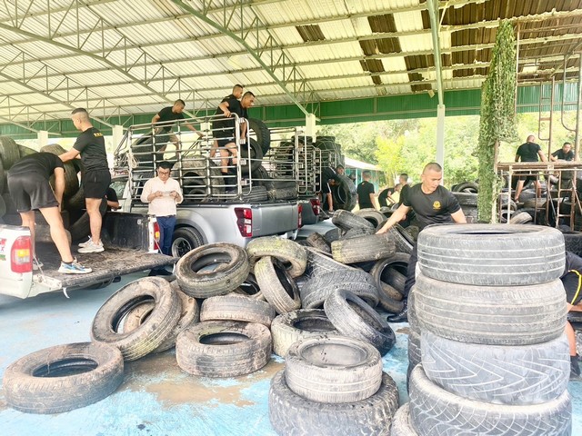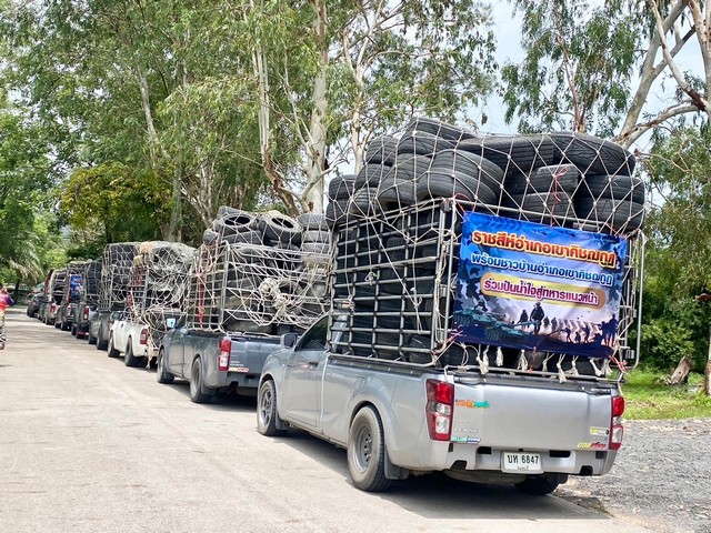 ตราด-คนไทยไม่ทอดทิ้งกัน“ ร่วมปันนํ้าใจสู่ทหารแนวหน้าบริจาคยางสถาพเก่ากว่า 1,000 เส้น เพื่อนําไปสร้างบังเกอร์ พร้อมนํ้าดื่มและผลไม้จํานวนมาก