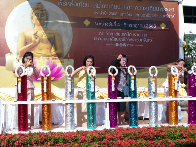 นราธิวาส-มหาวิทยาลัยนราธิวาสราชนครินทร์ จัดพิธีหล่อเทียน สมโภชเทียน ถวายเทียนพรรษา 9 วัด เพื่อสืบสานประเพณีไทย อนุรักษ์มรดกพุทธศาสนาให้อยู่คู่สถาบันการศึกษาสืบไป ประจำปี 2568