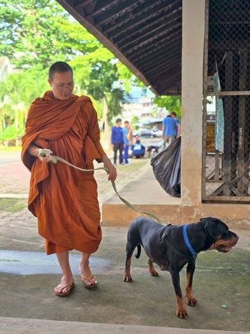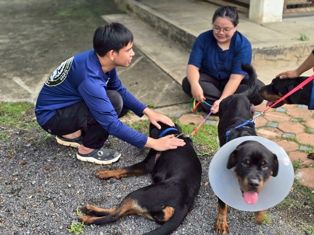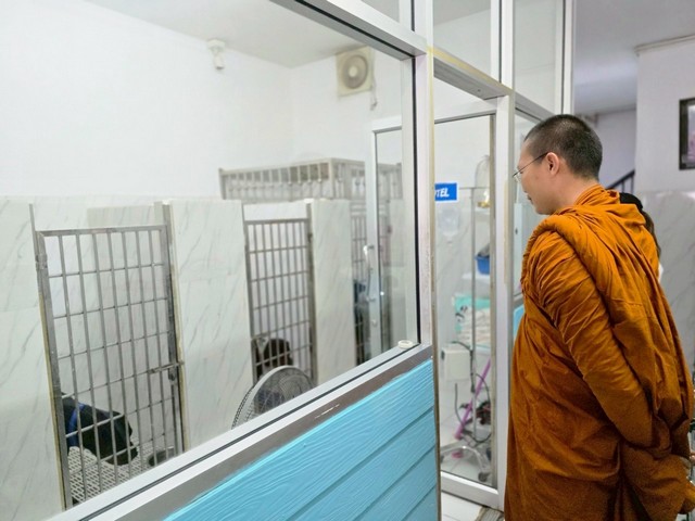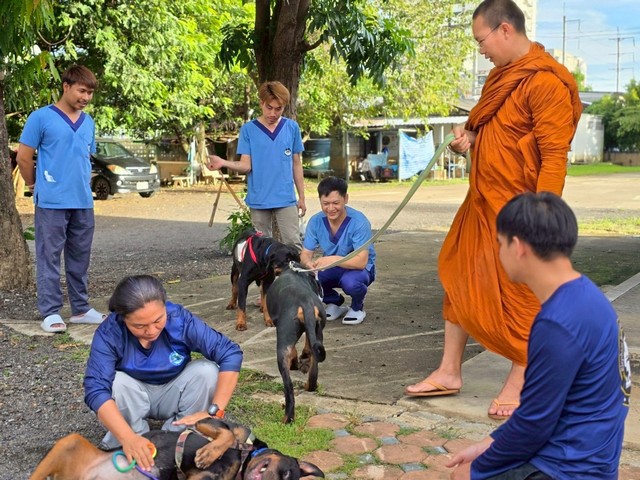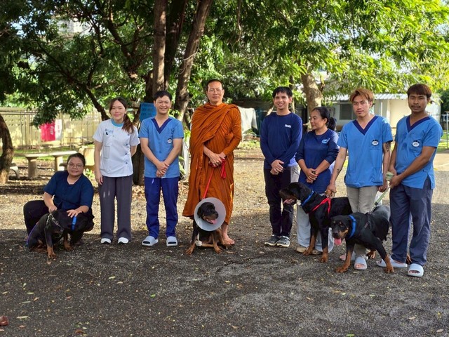 พระครูอ๊อด วัดเจดีย์หลวง จังหวัดเชียงใหม่ เยี่ยมอาการสุนัขร็อตไวเลอร์ 4 ตัวถูกทิ้งกลางป่า ทีมสัตวแพทย์เร่งรักษาบาดแผล-ผ่าตัดดวงตาและนำกระสุนออก หลังได้รับการช่วยเหลือจากมูลนิธิ ดิอาร์ค ในพระราชูปถัมภ์