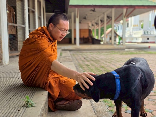 พระครูอ๊อด วัดเจดีย์หลวง จังหวัดเชียงใหม่ เยี่ยมอาการสุนัขร็อตไวเลอร์ 4 ตัวถูกทิ้งกลางป่า ทีมสัตวแพทย์เร่งรักษาบาดแผล-ผ่าตัดดวงตาและนำกระสุนออก หลังได้รับการช่วยเหลือจากมูลนิธิ ดิอาร์ค ในพระราชูปถัมภ์