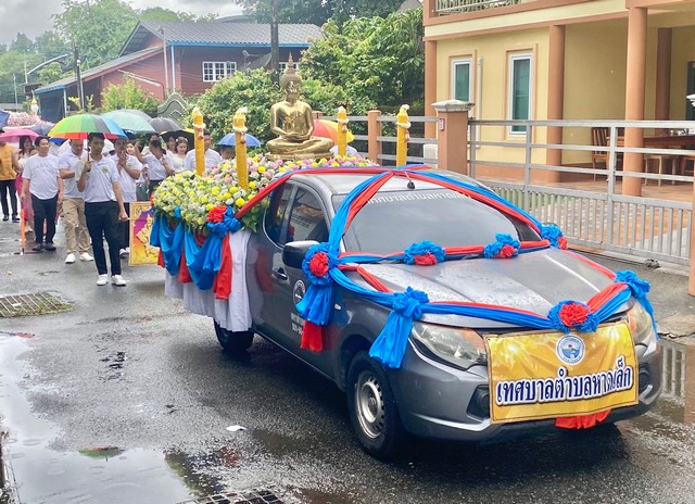 ตราด-เทศบาลตําบลหาดเล็ก จัดกิจกรรมโครงการหล่อเทียนและแห่เทียนจํานําพรรษา ประจําปีงบประมาณ 2568