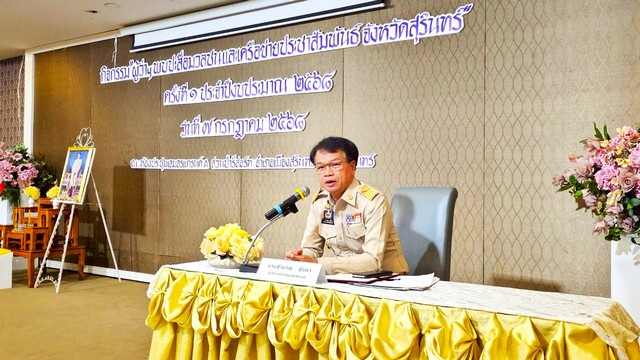 วันที่ 7 กรกฎาคม 2567 ที่ ห้องประชุมเอมอรแกรนต์ A สวนป่ารีสอร์ท อำเภอเมืองสุรินทร์ จังหวัดสุรินทร์นายชำนาญ ชื่นตา ผู้ว่าราชการจังหวัดสุรินทร์ เป็นประธาน การจัดกิจกรรม “ผู้ว่าฯ พบปะสื่อมวลชนและเครือข่ายประชาสัมพันธ์จังหวัดสุรินทร์” ครั้งที่ 1 ประจําปีงบประมาณ 2568 โดยมี นายธีรยุทธ ดวงมณี ประชาสัมพันธ์จังหวัดสุรินทร์ กล่าวรายงาน มี นายประภาส ศรีจันทร์เวียง รองผู้ว่าราชการจังหวัดสุรินทร์ นายวสันต์ ชิงชนะ รองผู้ว่าราชการจังหวัดสุรินทร์ พันเอก จิรัฎฐ์ ช่วงฉ่ำ รองผู้บัญชาการกองกำลังสุรนารี นายกิตติ สัตย์ซื่อ ปลัดจังหวัดสุรินทร์ นางสาวสุปราณี มหาพัฒนไทย หัวหน้าสำนักงานจังหวัดสุรินทร์ นายสหชาติ คำพูน ขนส่งจังหวัดสุรินทร์ นางวิลาวรรณ์ แสนจันทร์ สถิติจังหวัดสุรินทร์ นางจิราพร นิยมตรง ผู้อำนวยการสถานีวิทยุแห่งประเทศไทยจังหวัดสุรินทร์ นายรองรัตน์ จงอุตส่าห์ นายอำเภอเมืองสุรินทร์ หัวหน้าส่วนราชการ ร่วมเป็นเกียรติ