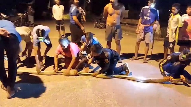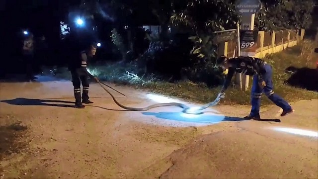 หลังจากที่นายทวีศักดิ์ บุญเศษ ทีมอสรพิษวิทยาภาคใต้ และ ทีมปราบอสรพิษอาสาพิทักษ์งู จ.สงขลา จึงพร้อมด้วย นาย อภิชาติ พรหมสงค์ รีบนำอุปกรณ์ในการจับงูเข้าทำการตรวจสอบและจับงู