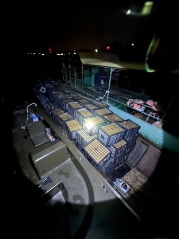 ในเวลาต่อมา ชุดปฏิบัติการลาดตระเวนสามารถใช้กล้องตรวจการณ์กลางคืน (Night Vision) ตรวจพบเรือเหล็กติดเครื่องยนต์ มีบุคคลขับขี่ 1 คน พร้อมสิ่งของต้องสงสัยจำนวนมากบรรทุกใส่ลังพลาสติกอยู่ภายในเรือ กำลังแล่นเรือข้ามแม่น้ำโขงจากฝั่งแขวงสะหวันนะเขต สปป.ลาว เข้ามาที่ริมฝั่งจังหวัดมุกดาหาร