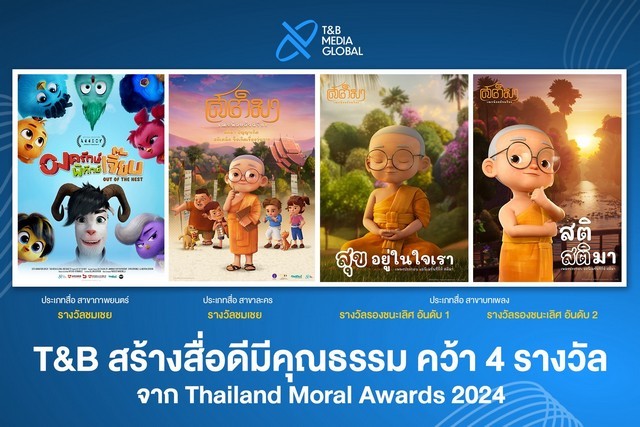 บริษัท ที แอนด์ บี มีเดีย โกลบอล (ประเทศไทย) จำกัด สร้างสรรค์ผลงานแอนิเมชันคุณภาพอย่าง “สติมา” และ “Out Of The Nest องครักษ์พิทักษ์เจี๊ยบ” ออกมาสร้างความประทับใจให้กับผู้ชมมาแล้ว ยังการันตีคุณภาพด้วยการคว้า 4 รางวัลจากเวที “Thailand Moral Awards 2024” สื่อสนุกสร้างสรรค์ พร้อมพลังคุณธรรม จัดโดยศูนย์คุณธรรม (องค์การมหาชน) ที่จัดมอบรางวัลให้แก่บุคคล ชุมชน องค์กร และสื่อ ที่เป็นต้นแบบด้านคุณธรรมและสร้างประโยชน์แก่สังคม ทั้งในระดับชาติและนานาชาติ รวมจำนวนทั้งสิ้น 168 รางวัล โดยพิธีมอบรางวัลครั้งนี้มีบุคคลสำคัญร่วมแสดงความยินดี ได้แก่ นายประสพ เรียงเงิน ปลัดกระทรวงวัฒนธรรม คุณหญิงปัทมา ลีสวัสดิ์ตระกูล ประธานกรรมการศูนย์คุณธรรม และ รศ.นพ.สุริยเดว ทรีปาตี ผู้อำนวยการศูนย์คุณธรรม ณ หอศิลป์แห่งชาติ กระทรวงวัฒนธรรม โดยมี พลอากาศเอก ชลิต พุกผาสุข องคมนตรี ให้เกียรติเป็นประธานในพิธีมอบรางวัล