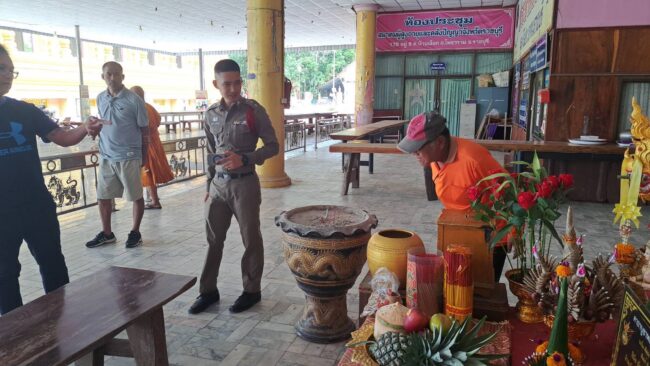 นายทวิช เปิดเผยว่า ปกติวัดจะเก็บตู้บริจาคเข้าห้องทุกวัน และนำเงินออกเข้าบัญชีวัดสัปดาห์ละครั้ง คืนก่อนเกิดเหตุมีการนำตู้บริจาค 6 ใบไปเก็บไว้ตามปกติ แต่ช่วงเช้าพบว่าหายไป 1 ใบ คาดมีเงินภายในราว 3,000 บาท พร้อมหมวกไอ้โม่งตกอยู่ จึงแจ้งเจ้าหน้าที่ทันที
