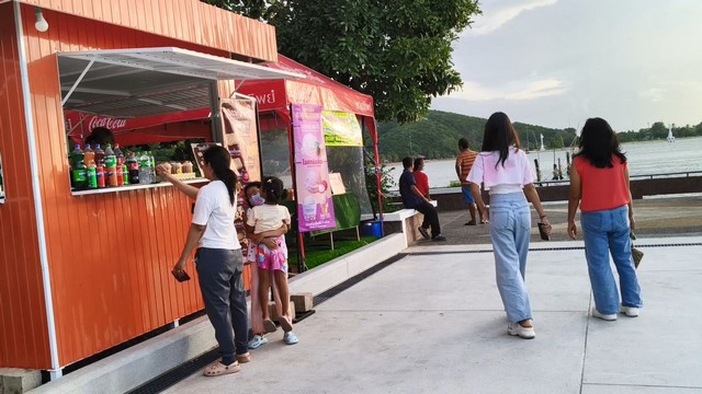 สงขลา-สีสัน นักท่องเที่ยวแห่เที่ยวประติมากรรมพญานาคพ่นน้ำ “องค์นาคาธิบดี”และถ่ายภาพพระอาทิตย์ตก