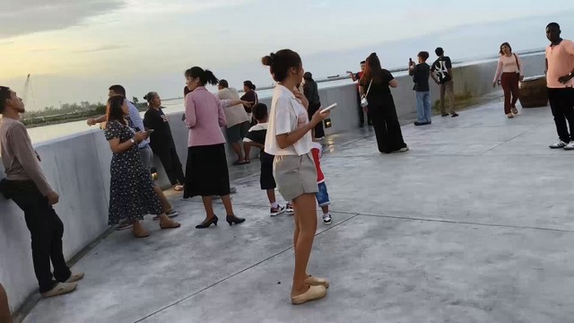 สงขลา-สีสัน นักท่องเที่ยวแห่เที่ยวประติมากรรมพญานาคพ่นน้ำ “องค์นาคาธิบดี”และถ่ายภาพพระอาทิตย์ตก