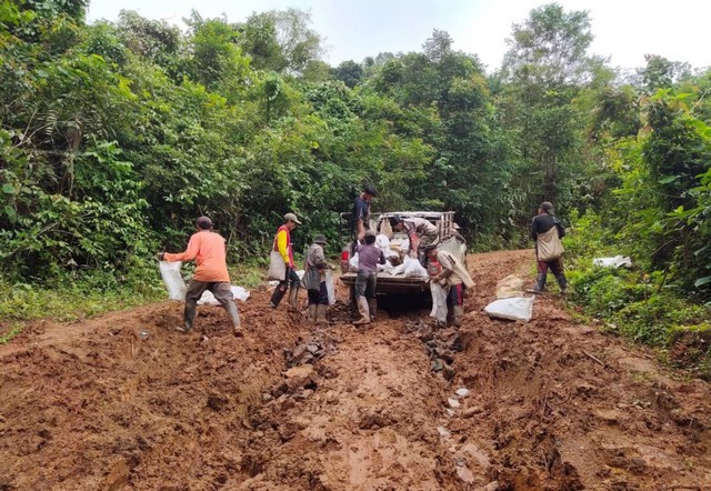 นายพงษ์พิพัฒน์ มีเบญจมาศ นายกองค์การบริหารส่วนตำบลแม่สาม กล่าวเพิ่มเติมว่า เพื่อเป็นการแก้ไขปัญหาเฉพาะหน้า ในถนนสายรองเข้าหมู่บ้าน ในบางจุดของเส้นทางที่ยากลำบาก เช่น เส้นทางบ้านห้วยแห้ง – บุญเลอ ต.แม่สามแลบ อ.สบเมย จ.แม่ฮ่องสอน ถนนเป็นร่องลึก เละสั ญจรไม่ได้ ทางอบต.แม่สามแลบ ได้ร่วมกับ ชาวบ้านในพื้นที่ช่วยกันแก้ไขชั่วคราวเป็นจุดๆ โดยนำดิน หินลูกรังใส่กระสอบทรายวางตามร่องลึกบนเส้นทาง เพื่อสัญจรได้ชั่วคราวไปก่อน