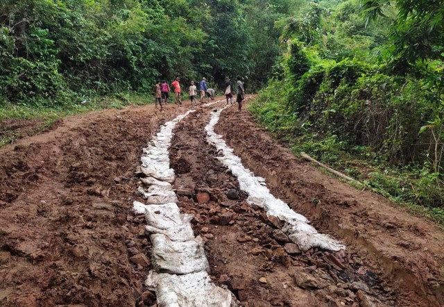 นายพงษ์พิพัฒน์ มีเบญจมาศ นายกองค์การบริหารส่วนตำบลแม่สาม กล่าวเพิ่มเติมว่า เพื่อเป็นการแก้ไขปัญหาเฉพาะหน้า ในถนนสายรองเข้าหมู่บ้าน ในบางจุดของเส้นทางที่ยากลำบาก เช่น เส้นทางบ้านห้วยแห้ง – บุญเลอ ต.แม่สามแลบ อ.สบเมย จ.แม่ฮ่องสอน ถนนเป็นร่องลึก เละสั ญจรไม่ได้ ทางอบต.แม่สามแลบ ได้ร่วมกับ ชาวบ้านในพื้นที่ช่วยกันแก้ไขชั่วคราวเป็นจุดๆ โดยนำดิน หินลูกรังใส่กระสอบทรายวางตามร่องลึกบนเส้นทาง เพื่อสัญจรได้ชั่วคราวไปก่อน