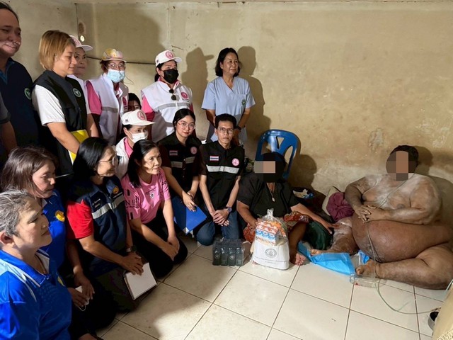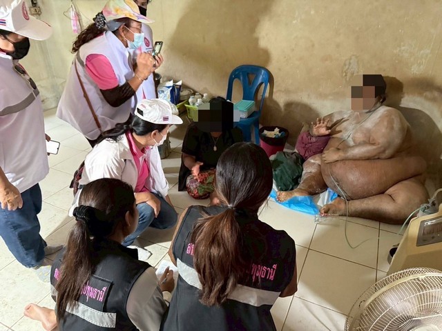 สาธารณสุขอำเภอ,สาธารณสุขตำบล,นายก อบต.คลองสี่,เจ้าหน้าที่อบต.คลองสี่,กำนัน,ผู้ใหญ่บ้าน และอพม.ในพื้นที่ ทราบว่า นางเอ (นามสมมุติ) มารดา อายุ 63 ปี มีโรคประจำตัว โรคหัวใจ เจ็บเข่า เดินได้ไม่สะดวกแยกทางกับสามี นางเอฯ ปัจจุบันไม่ได้ประกอบอาชีพ เนื่องจากต้องดูแลนายบี (นามสมมุติ) บุตรชาย(อ้วน) อายุ 35 ปี ซึ่งมีบัตรประจำตัวคนพิการ (แต่ยังไม่ได้ขึ้นทะเบียนรับเบี้ยคนพิการ) ป่วยเป็นโรคอ้วน น้ำหนักประมาณ 300 กก. ไม่สามารถเคลื่อนไหวได้ ทำให้เป็นแผลกดทับ โรคหัวใจโต โรคจิตเวช โรคความดันและภาวะน้ำท่วมปอด โดยนางเอฯ แจ้งว่าไม่ประสงค์เข้ารับการรักษาที่รพ. เจ้าหน้าที่สังกัดกระทรวงสาธารณสุขจึงมาให้การดูแลสัปดาห์ละ3-4วัน ครอบครัวมีฐานะยากจน