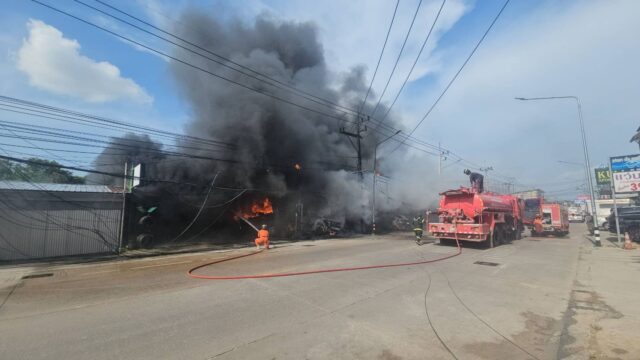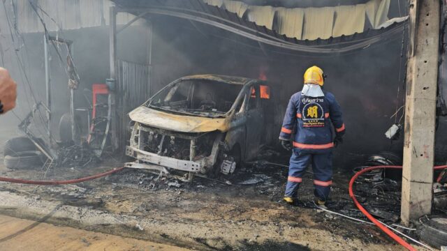 ชลบุรี-ไฟโหมไหม้อู่ซ่อมรถวอดทั้งอู่ รถอัลพาร์ด-เก๋ง-กระบะเสียหาย 5 คัน เจ็บ 2 ราย