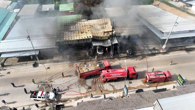 เมื่อเวลา 15.30 น. วันที่ 13 กรกฎาคม 2568 ร.ต.ท.บูรพา ใจหาญ รองสารวัตรสอบสวน สภ.หนองปรือ รับแจ้งเหตุเพลิงไหม้อู่ซ่อมรถยนต์และร้านยางชื่อ “สมโภชเซอร์วิส” บนถนนพรประภานิมิต ม.7 ต.หนองปรือ อ.บางละมุง จ.ชลบุรี จึงประสานเจ้าหน้าที่หน่วยบรรเทาสาธารณภัยเทศบาลเมืองหนองปรือ หน่วยป้องกันภัยพิบัติเมืองพัทยา และเทศบาลตำบลโป่ง พร้อมรถน้ำ 5 คัน รถกู้ภัย อุปกรณ์กู้เพลิง และรถพยาบาล เข้าระงับเหตุเป็นการด่วน