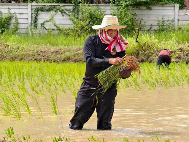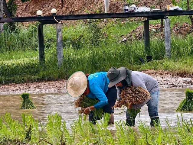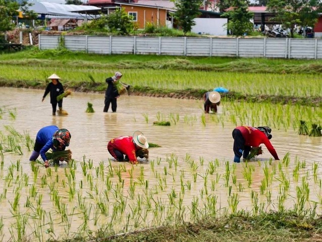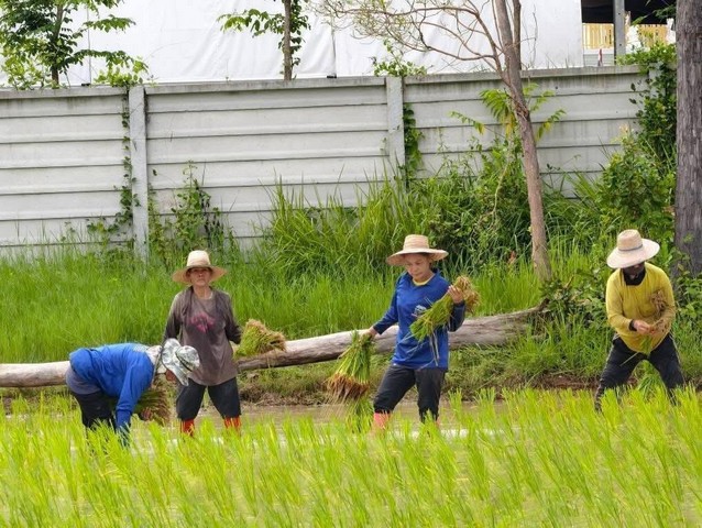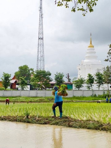 กาฬสินธุ์-วัดพระธาตุหมื่นหินร่วมตำรวจสภ.เขาวง ฝ่ายปกครอง ลงแขกปักดำนาสืบสานประเพณีวิถีชีวิตชาวนาไทย
