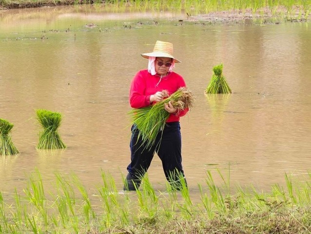 ที่แปลงนาภายในวัดพระธาตุหมื่นหิน อ.เขาวง จ.กาฬสินธุ์ พ.ต.อ. สมชาย ภูกองชนะ ผกก.สภ.เขาวง นำข้าราชการตำรวจในสังกัด พร้อมด้วยครอบครัวตำรวจ สภ.เขาวง ร่วมกับนายสิทธิโชค ศรีเจริญ นายอำเภอเขาวง พร้อมด้วยปลัดอำเภอ เจ้าหน้าที่ฝ่ายปกครอง เจ้าหน้าที่กู้ภัยหมื่นหิน (มูลนิธิหลวงปู่ศิลา สิริจันโท) กำนัน ผู้ใหญ่บ้าน และประชาชนในพื้นที่ร่วมกันลงแขกปักดำนาข้าวเหนียวเขาวง