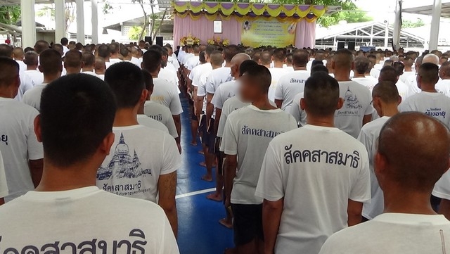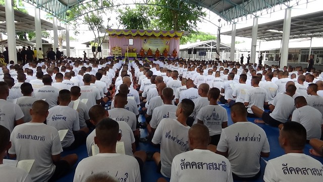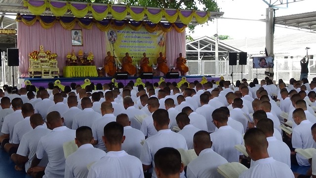 อ่างทอง หลวงพี่น้ำฝนนำผู้ต้องขังสวดเจริญพระพุทธมนต์เฉลิมพระเกียรติ