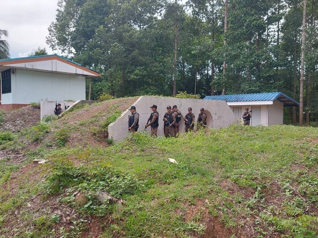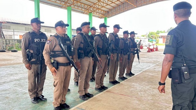 ตำรวจโรงพักชายแดนบุรีรัมย์ ฝึกทบทวนยุทธวิธีรับมือข้าศึก ซักซ้อมแผนคุ้มกันผู้บาดเจ็บ และประชาชน เด็ก คนชรา พื้นที่เสี่ยงภัยไปยังหลุมหลบภัย ก่อนลำเลียงต่อศูนย์พักพิง เตรียมพร้อมรับภัยสงคราม หลังสถานการณ์ชายแดนยังตึงเครียด