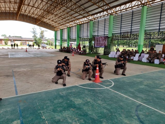 วันที่ 17 ก.ค. 68 พล.ต.ต.ประสงค์ เรืองเดช รองจเรตำรวจและรักษาราชการแทน รองผู้บัญชาการตำรวจภูธรภาค 3 พร้อมด้วย พล.ต.ต.ณรงค์ศักดิ์ พรหมทา ผู้บังคับการตำรวจภูธรจังหวัดบุรีรัมย์ , พ.ต.อ.เจตน์สฤษฎิ์ แพ่งศรีสาร รอง ผบก.ภ.จว.บุรีรัมย์ , พ.ต.อ.ศิริวัฒน์ สมกิจศิริ รอง ผบก.ภ.จว.บุรีรัมย์ , หัวหน้าสถานีในสังกัด ภ.จว.บุรีรัมย์ , กก.ปพ.บก.สส.ภ.3 และ นปพ.กก.สส.ภ.จว.บุรีรัมย์ ได้ลงพื้นที่ตรวจติดตามการฝึกทบทวนยุทธวิธี ของชุดปฏิบัติการรักษาความสงบเรียบร้อยตามแผนพิทักษ์พื้นที่ส่วนหลัง หรือแผนอพยพประชาชนกรณีเกิดสงคราม ที่โดมเทศบาลตลาดนิคมปราสาท อ.บ้านกรวด จ.บุรีรัมย์ โดยตำรวจภูธรจังหวัดบุรีรัมย์จัดขึ้น เพื่อเพิ่มประสิทธิภาพให้ตำรวจตามแนวชายแดน สามารถปฏิบัติตามแผนป้องกันชีวิตและทรัพย์สินของประชาชน ในพื้นที่ตามแนวชายแดน ทั้งในสถานการณ์ปกติ และเมื่อเกิดสถานการณ์ฉุกเฉิน ได้อย่างมีประสิทธิภาพ