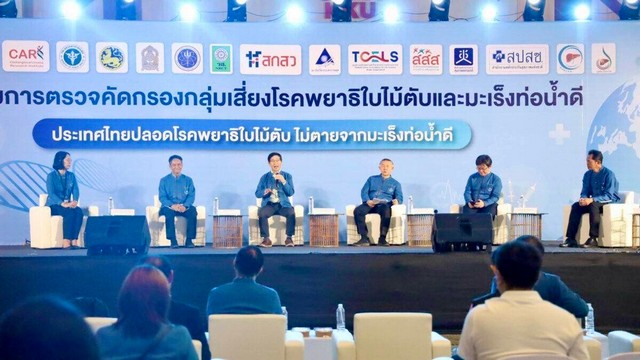 สถาบันวิจัยระบบสาธารณสุข (สวรส.) สถาบันวิจัยมะเร็งท่อน้ำดี มหาวิทยาลัยขอนแก่น และศูนย์ความเป็นเลิศทางการแพทย์มะเร็งท่อน้ำดี โรงพยาบาลศรีนครินทร์ ร่วมกับสำนักงานคณะกรรมการส่งเสริมวิทยาศาสตร์ วิจัยและนวัตกรรม (สกสว.) สำนักงานการวิจัยแห่งชาติ (วช.) ศูนย์ความเป็นเลิศด้านชีววิทยาศาสตร์ (องค์การมหาชน) (TCELS) และภาคีเครือข่าย ทั้งจากกระทรวงสาธารณสุข กระทรวงศึกษาธิการ และกระทรวงมหาดไทย สำนักงานหลักประกันสุขภาพแห่งชาติ (สปสช.) สำนักงานคณะกรรมการสุขภาพแห่งชาติ (สช.) สำนักงานกองทุนสนับสนุนการสร้างเสริมสุขภาพ (สสส.) Kick off กิจกรรมครั้งสำคัญของประเทศ “มหกรรมการตรวจคัดกรองกลุ่มเสี่ยงโรคพยาธิใบไม้ตับและมะเร็งท่อน้ำดี “ประเทศไทยปลอดโรคพยาธิใบไม้ตับ ไม่ตายจากมะเร็งท่อน้ำดี”