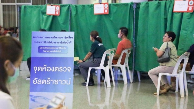 โดยภายในงานฯ มีการให้บริการตรวจคัดกรองกลุ่มเสี่ยงโรคพยาธิใบไม้ตับ โดยใช้ชุดตรวจปัสสาวะสำเร็จรูปชนิดเร็ว OV ATK ให้กับประชากรกลุ่มเสี่ยงอายุ 15 ปีขึ้นไป จำนวน 2,000 ราย และให้บริการตรวจคัดกรองมะเร็งท่อน้ำดีโดยการตรวจอัลตร้าซาวด์ กับประชากรกลุ่มเสี่ยงอายุ 40 ปีขึ้นไป จำนวน 600 ราย ทั้งนี้กลุ่มเสี่ยงดังกล่าว เป็นกลุ่มที่มีประวัติเสี่ยงข้อใดข้อหนึ่งดังนี้ 1) เคยติดเชื้อพยาธิใบไม้ตับ 2) เคยกินยาถ่ายพยาธิใบไม้ตับ 3) เคยกินปลาน้ำจืดแบบสุกๆ ดิบๆ ซึ่งในงานฯ หากมีการพบการติดเชื้อพยาธิใบไม้ตับหรือตรวจเจอมะเร็งท่อน้ำดี จะมีการแนะนำและส่งผู้ป่วยเข้าสู่การรักษาอย่างเป็นระบบ