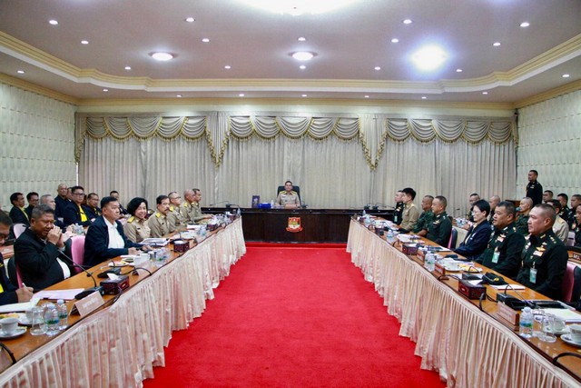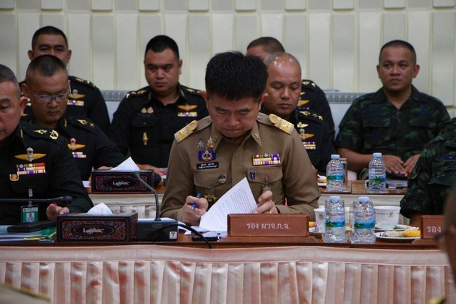 โดยมี (1) นายวุฒิพงษ์ สุภัควนิช รองผู้ว่าราชการจังหวัดในฐานะรองผอ.รมน.จว. (2) พล.ต.อัษฎาวุธ ปันยารชุน ผู้บัญชาการกองกำลังสุรสีห์ (3) พลตรี ชนมากรณ์ ภิบาลชนม์ ผู้บัญชาการมณฑลทหารบกที่ 17 หรือหน่วยบัญชาการสกัดกั้นและปราบปรามยาเสพติด สารตั้งต้นและเคมีภัณฑ์ ชายแดนภาคตะวันตก (นบ.ยส.17) และส่วนราชการในพื้นที่เข้าร่วมสรุปผลการดำเนินงาน