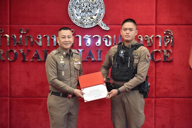 วันนี้ (18 กรกฎาคม 2568) เวลา 10.00 น. พล.ต.อ.กิตติ์รัฐ พันธุ์เพ็ชร์ ผู้บัญชาการตำรวจแห่งชาติ มอบใบประกาศเกียรติคุณตามโครงการ “ทำดี มีรางวัล” ให้กับเจ้าหน้าที่ตำรวจ สถานีตำรวจนครบาลสุทธิสาร จำนวน 2 นาย คือ “ส.ต.ท.วรดร ถิระธนาบูรณ์” ผบ.หมู่ (ป.) สน.สุทธิสาร และ “ส.ต.ท.จิรายุทธ ราชอาจ” ผบ.หมู่ (ป.) สน.สุทธิสาร ที่เข้าระงับเหตุชายคลุ้มคลั่งบริเวณซอยรัชดา 16 กรุงเทพมหานคร ณ ห้องพรหมนอก ชั้น 2 อาคาร 1 สำนักงานตำรวจแห่งชาติ