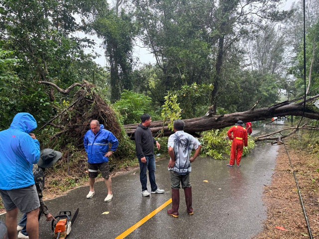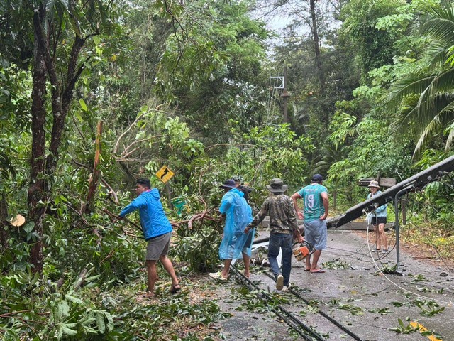 โดยสภาพอากาศทั่วไปของจังหวัดพังงา ท้องฟ้ามืดครึ้ม มีฝนตกหนักถึงหนักมากประกอบกับมีลมกรรโชกแรงทำให้ต้นสนขนาดใหญ่ ฉีกขาด ที่อยู่บริเวณถนนเลียบหาดแหลมปะการัง หมู่ 2 ต.คึกคัก อ.ตะกั่วป่า จังหวัดพังงา หักโค่นล้มทับเสาไฟฟ้ารวมระยะทางกว่า 500 เมตร ทำให้ถนนเลียบหาดแหลมปะการังที่จะเข้าไปยังโรงแรม รีสอร์ทไม่สามารถสัญจรได้ อีกทั้งต้นสนยังหักโค่นล้มทับรถยนต์ของชาวบ้านและนักท่องเที่ยวที่จอดบริเวณชายหาดได้รับความเสียหาย เสาไฟฟ้า หม้อแปลงไฟ ล้มเสีหาย
