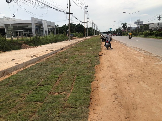 นายวิจิตร กล่าวต่อว่า อีกทั้งการปลูกหญ้าดังกล่าวไม่ได้ปลูกบนผิวจราจรหลักที่รถสัญจรไปมา แต่เป็นการปลูกบริเวณขอบรายทางชิดกับฟุตบาท ซึ่งเดิมก็เป็นดินอยู่แล้ว ทั้งนี้การปลูกหญ้านอกจากช่วยป้องกันการกัดเซาะแล้ว ยังเพิ่มพื้นที่สีเขียว เพิ่มทัศนียภาพความสวยงามและสามารถจอดรถข้างทางได้ด้วย