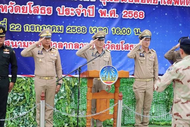 เมื่อวันที่ 22 กรกฎาคม 2568ผู้สื่อข่าวรายงานว่า เวลา 16.00 น. ณ สนามหน้าศาลากลางจังหวัดยโสธร นายชาญชัย ศรศรีวิชัย ผู้ว่า ราชการจังหวัดยโสธร เป็นประธานในพิธีปล่อยแถวเปิดปฏิบัติการกวาดล้างยาเสพติด “No Drugs No Dealersผนึกกำลัง ชุมชนปลอดยาเสพติด” โดยมีนายสมชัย บูรณะ ปลัดจังหวัดยโสธร ในฐานะเลขานุการศูนย์อำนวยการป้องกันและปราบปรามยาเสพติดจังหวัดยโสธร(ศอ.ปส.จ.ยส.) กล่าวรายงาน พร้อมด้วย หัวหน้าส่วนราชการ และชุดปฏิบัติการจากหน่วยงานต่างๆ เข้าร่วมพิธีอย่างพร้อมเพรียง