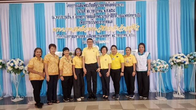 ที่หอประชุม รพ.สมเด็จพระนางเจ้าสิริกิติ์ กรมแพทย์ทหารเรือ อ.สัตหีบ จ.ชลบุรี รพ.สมเด็จพระนางเจ้าสิริกิติ์ฯ ร่วมกับนศ.หลักสูตรนักบริหารระดับสูงในกระบวนการยุติธรรมทางปกครอง รุ่นที่ 3, สโมสรไรออนส์สัตหีบชลบุรี, สโมสรไลออนส์ในเขต 9, โรงพยาบาลบ้านแพ้ว และโรงพยาบาลสัตหีบ กม.10 รวม 6 องค์กร ร่วมตรวจคัดกรองโครงการผ่าตัดต้อกระจกเฉลิมพระเกียรติ พระบาทสมเด็จพระเจ้าอยู่หัวฯ เนื่องในโอกาสวันคล้ายวันพระราชสมภพ 28 กรกฎาคม 2568