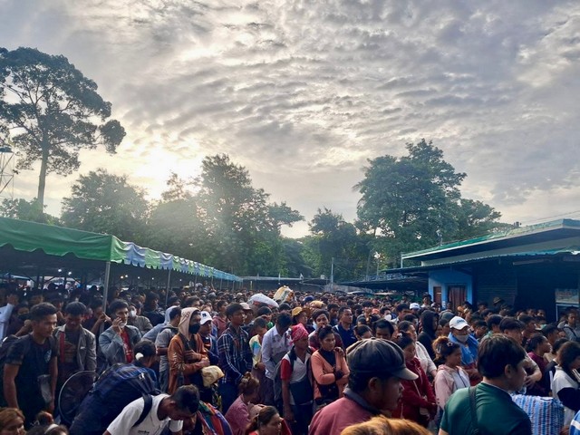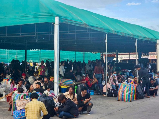 จันทบุรี-ชาวเขมรหอบลูกหลานกลับประเทศ จุดผ่านแดนบ้านแหลมเกือบ 3,000 คน