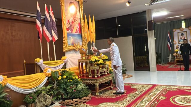 จัดให้มีกิจกรรม พิธีตักบาตรพระสงฆ์ จำนวน ๑๐ รูป ถวายเป็นพระราชกุศล พิธีถวายเครื่องราชสักการะ ถวายราชสดุดี ถวายพระพรชัยมงคลและ พิธีเจริญพระพุทธมนต์ และการถวายสัตย์ ปฏิญาณ เพื่อเป็นข้าราชการที่ดีและพลังของแผ่นดินและการลงนามถวายพระพร