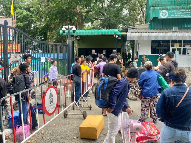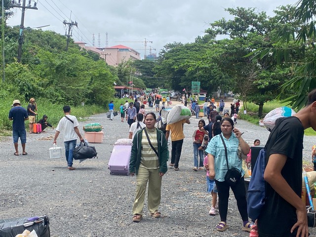 ซึ่งช่วงเช้ารอหน้าด่านจุดผ่านแดนบ้านหาดเล็ก เป็นจำนวนมาก เพื่อเป็นการเช็คตรวจสัมภาระที่แรงงานชาวกัมพูชาได้หิ้วสิ่งของกลับบ้านเพื่อความปลอดภัยและอาจจะยังไม่หยุดเพียงเท่านี้ การเดินลับบ้านของแรงกัมพูชาคาดว่า 400-500 คน ส่วนคนไทย อยู่ที่ 110 คน ที่ได้เดินทางกลับบ้านเนื่องจากโรงงานเย็บเสื้อผ้าฝั่งกัมพูชาปิด 7 วัน เพื่อรอสถานการณ์สู้รบชายแดนก่อนถึงกลับเข้ามาใหม่