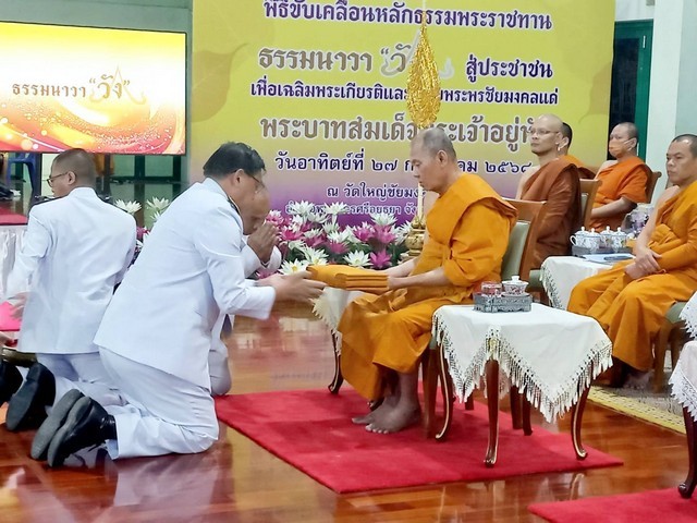 โดยคณะสงฆ์ได้ประกอบพิธีเจริญพระพุทธมนต์และประกาศพระปริตร ถวายพระราชกุศลแด่พระบาทสมเด็จพระเจ้าอยู่หัว และบรมวงศานุวงศ์ ในการขับเคลื่อนธรรมนาวาวัง จากนั้นร่วมฟังการบรรยายธรรมในการเผยแพร่พระรัตนตรัยโดยใช้หลักธรรมพระราชทาน ธรรมนาวา “วัง” สู่หัวใจประชาชน จากพระมหาอุกฤษ ปภสฺสโร ป.ธ.๗,ดร. เจ้าอาวาสวัดทุ่งหนองอ้อ จังหวัดปราจีนบุรี