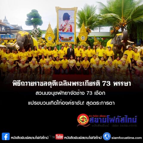 สุดยิ่งใหญ่พิธีถวายราชสดุดีเฉลิมพระเกียรติ 73 พรรษา สวนนงนุชพัทยาจัดช้าง 73 เชือก แปรขบวนเทิดไท้องค์ราชัน! สุดตระการตา