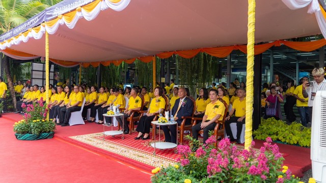 พิธีเริ่มต้นด้วยขบวนเฉลิมพระเกียรติ ชื่อชุด“เฉลิมฉัตรสุรเสียง สรรเสริญพระวชิรเกล้าเจ้าอยู่หัว”อันยิ่งใหญ่อลังการ นับเป็นการรวมพนักงานและช้างร่วมพิธีถวายพระพรจำนวนมากที่สุด โดยมีนายกัมพล ตันสัจจา เป็นประธานในพิธี วางพุ่มทอง-พุ่มเงิน เปิดกรวยกระทงดอกไม้ถวายราชสักการะ พร้อมนำกล่าวถวายราชสดุดีเฉลิมพระเกียรติ และกล่าวคำถวายพระพรชัยมงคล “ทรงพระเจริญ” ร่วมกันทั้งพิธี