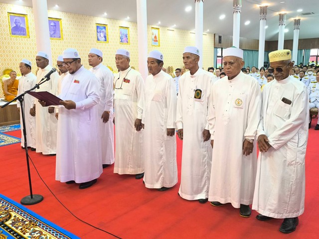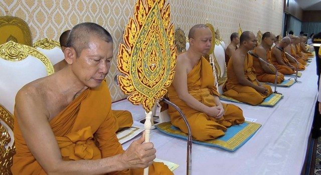 พระสงฆ์ 10 รูปเจริญพระพุทธมนต์ ประธานสงฆ์ให้ศิล ประธานในพิธีและผู้ร่วมพิธีรับศิล เจ้าหน้าที่กล่าวคำถวายผ้าไตร ภัตาหาร จตุปัจจัยไทยธรรม จากนั้นผู้ว่าราชการจังหวัดนครนายก ถวายผ้าไตรจีวรแด่พระสงฆ์ จำนวน 10 รูป ข้าราชการชั้นผู้ใหญ่ถวายภัตตาหารปิ่นโตแด่พระสงฆ์ พระสงฆ์อนุโมทนา (ถวายอดิเรก) ผู้ว่าราชการจังหวัดนครนายก กรวดน้ำรับพร ต่อจากนั้นเป็นการประกอบพิธีศาสนาอิสลาม และประกอบพิธีศาสนาคริสต์