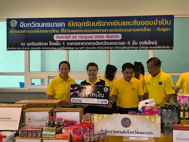 โดยจังหวัดนครนายกได้เปิดจุดรับบริจาคตั้งแต่วันที่ 28 กรกฎาคม 2568 เป็นต้นไป หรือสอบถามรายละเอียดเพิ่มเติมที่สำนักงานจังหวัดนครนายก โทร 037314575 เป็นต้น