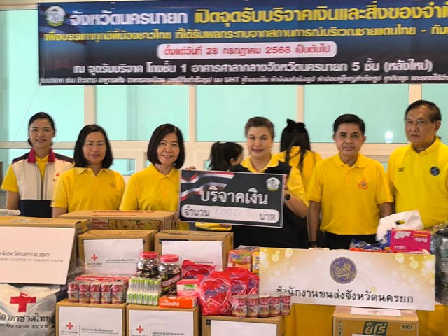 นครนายก – จังหวัดนครนายก เปิดจุดรับบริจาคเงินและสิ่งของจำเป็นเพื่อบรรเทาทุกข์พี่น้องชาวไทยที่ได้รับผลกระทบจากสถานการณ์บริเวณชายแดนไทย – กัมพูชา