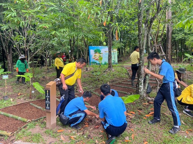 เพื่อช่วยชะลอการไหลของน้ำ และสร้างความชุ่มชื้นในบริเวณพื้นที่ใกล้เคียง “ฐานการทำปุ๋ยหมักธรรมชาติ/อินทรีย์” ซึ่งได้นำเศษใบไม้และเศษวัชพืชในพื้นที่มาทำปุ๋ยหมักอินทรีย์โดยใช้มูลวัวแห้งเป็นส่วนผสมหลัก เพื่อช่วยลดปริมาณการกำจัดขยะและสร้างมูลค่าทางทรัพยากรให้เกิดประโยชน์สูงสุด “ฐานการทำไบโอชาร์ (Biochar)” การเรียนรู้วิธีขั้นตอน การเผาถ่าน (Biochar) โดยนำวัสดุไม้ฟืนที่เหลือใช้ในพื้นที่กลับมาใช้ในรูปแบบไบโอชาร์ เพื่อทางการเกษตรที่เป็นมิตรต่อสิ่งแวดล้อม และ “ฐานการลงเชื้อเห็ดในโคลนต้นไม้ในถุง” เรียนรู้ขั้นตอนการใส่เชื้อเห็ดในกล้าไม้ เพื่อการฟื้นฟูและสร้างความสมบูรณ์ทางชีวภาพและด้านอาหาร ณ ฐานเรียนรู้พื้นที่ ป่า 3 อย่าง ประโยชน์ 4 อย่าง