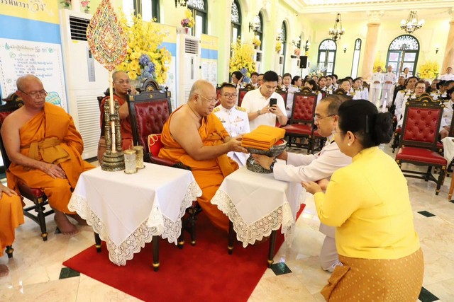 พ.อ.กิตติศักดิ์ วัฒนเดช รอง ผอ.รมน.จังหวัดปทุมธานี ผศ.ดร.ศศิธร จันทมฤก นายกเหล่ากาชาดจังหวัดปทุมธานี นายองครักษ์ ทองนิรมล รองผู้ว่าราชการจังหวัดปทุมธานี นายคมสัน ญาณวัฒนา รองผู้ว่าราชการจังหวัดปทุมธานี หัวหน้าส่วนราชการ ฝ่ายตุลาการ ทหาร ตำรวจ ชมรมองค์การทหารผ่านศึกจังหวัดปทุมธานี และประชาชน เข้าร่วมพิธี ณ ศาลาหอเขียว วัดโบสถ์ อำเภอเมืองปทุมธานี โอกาสนี้ ผู้ว่าราชการจังหวัดปทุมธานี ได้ถวายผ้าไตรพระราชทานแด่ประธานสงฆ์ และหัวหน้าส่วนราชการได้ร่วมถวายผ้าไตรพระราชทานโดยเสด็จพระราชกุศล แด่พระสงฆ์ทรงสมณศักดิ์ทั้ง 10 รูป ที่เมตตาร่วมเจริญพระพุทธมนต์ด้วย