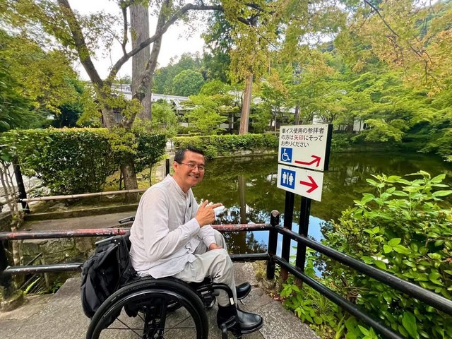 ผู้ใช้รถเข็นคนหนึ่งกำลังเคลื่อนเข้าสู่จุดชมวิวกิโลเมตรที่ 30 โดยไม่ต้องการความช่วยเหลือ