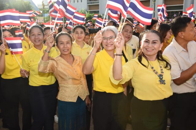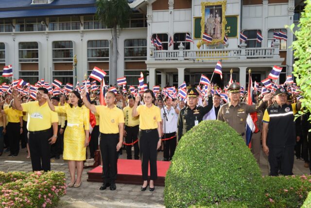 ราชบุรี- ข้าราชการและประชาชนร่วมยืนตรงเคารพธงชาติ แสดงพลังความรักชาติและความเป็นไทย